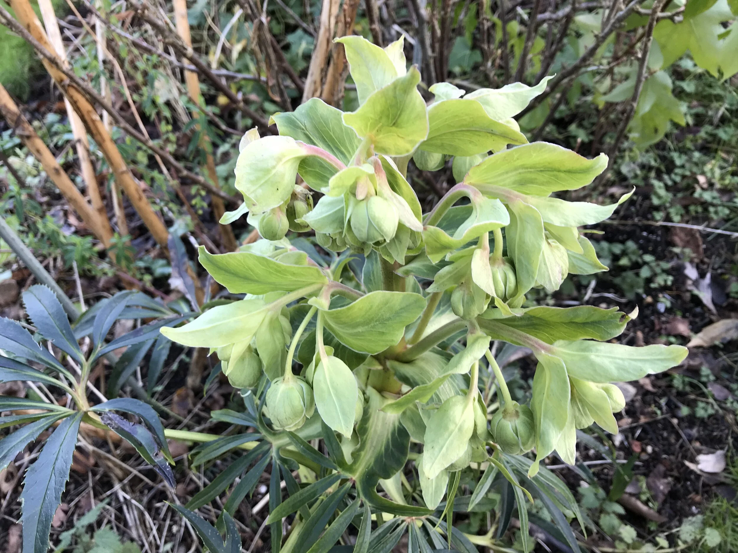 Cut back large leaves on hellebores so that the flowers are not hidden beneath.
